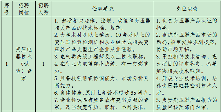 現根據公司經營發展需要,面向社會招聘變壓電器技術(試驗)專家、高壓技術(試驗)專家,有關事項通告如下。
